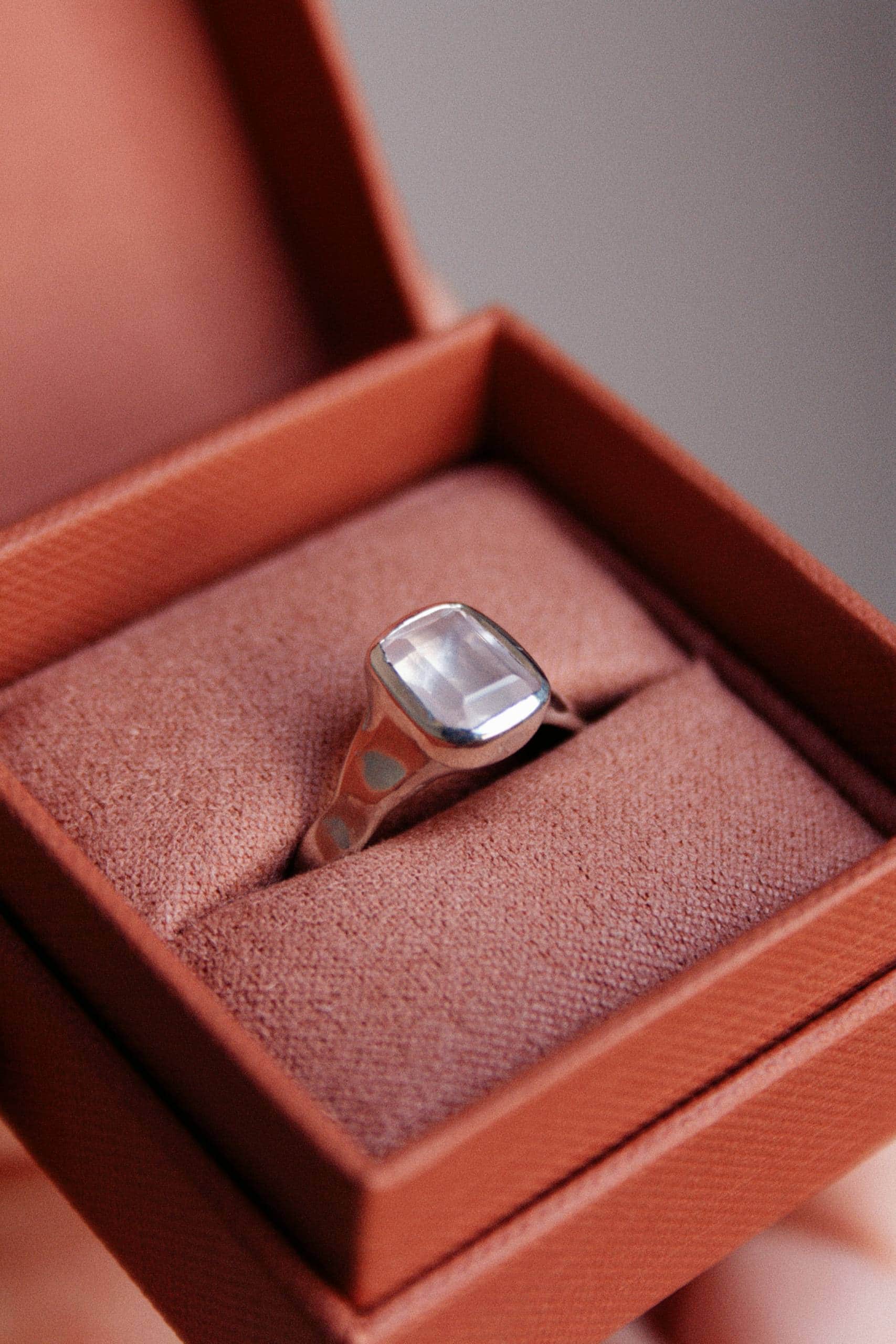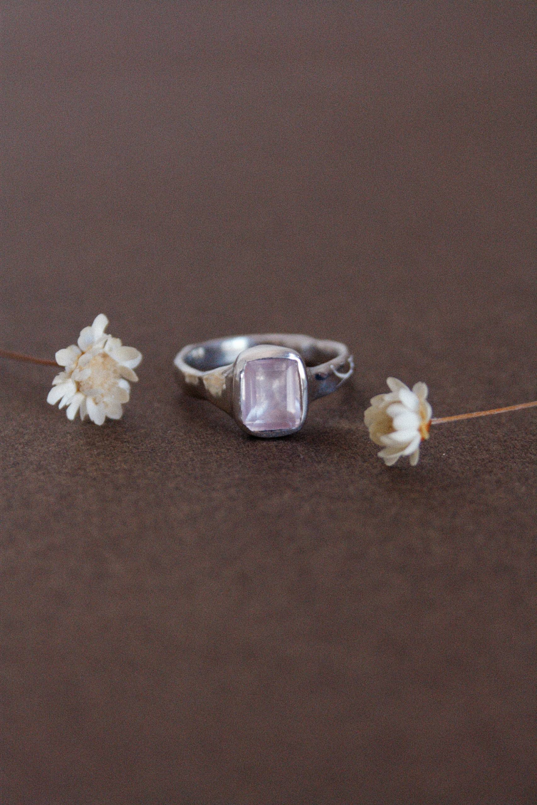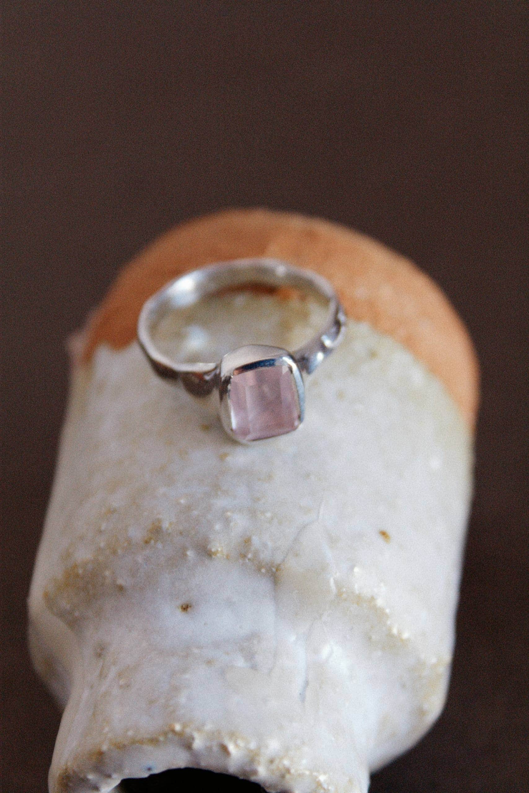 Anillo de plata hecho a la cera perdida con un cuarzo rosa de alta calidad, con forma octogonal. Es talla 14.5 pero puede ampliarse hasta la talla 17. Si lo necesitas, dime tu talla en la cajita de comentarios o a través de instagram.